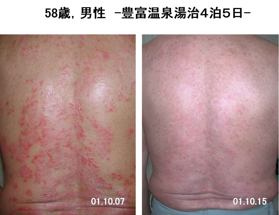 これらの効能は多くの湯治客の体験談や臨床報告で裏付けられています。湯に浸かることで、かゆみや炎症が和らぎ、その効果が長期間持続します。